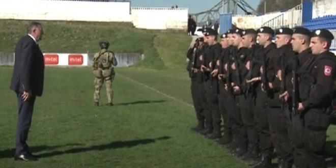 “Pomoz Bog, junaci” rekao je Dodik, a pripadnici Žandarmerije su odgovorili “Bog ti pomogao”, nakon čega se predsjednik RS rukovao sa svakim.