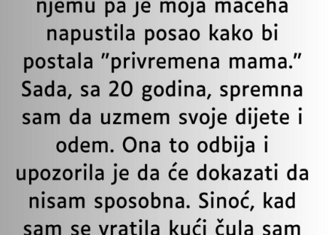 Međutim, kako su godine prolazile, odnosi su postajali sve napetiji. Neizgovorene emocije, potisnute zamjerke i osjećaj nepravde polako su nagrizali porodičnu harmoniju. Maceha je, s vremenom, počela osjećati da se njen trud podrazumijeva, da njene žrtve niko više ne vidi niti cijeni. Ono što je činila iz ljubavi, u njenim očima je postalo obaveza koju drugi uzimaju zdravo za gotovo.