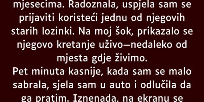 Tokom pregleda njegovih podataka, naišla je na nešto što joj je odmah privuklo pažnju — nepoznatu pretplatu na servis za praćenje lokacije. U prvi mah, nije znala šta da misli. Pitala se da li je riječ o nekoj poslovnoj potrebi, sigurnosnoj mjeri ili nečemu što joj nikada nije spomenuo.