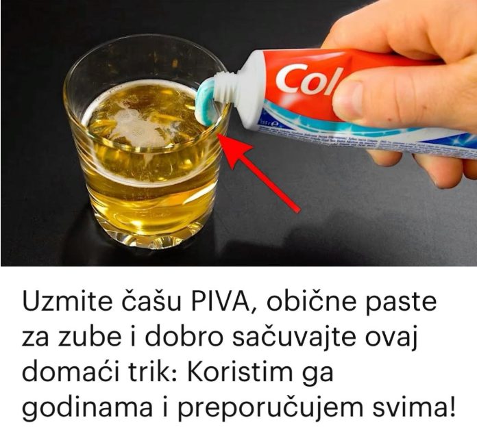 Uzmite čašu PIVA, obične paste za zube i dobro sačuvajte ovaj domaći trik: Koristim ga godinama i preporučujem svima!